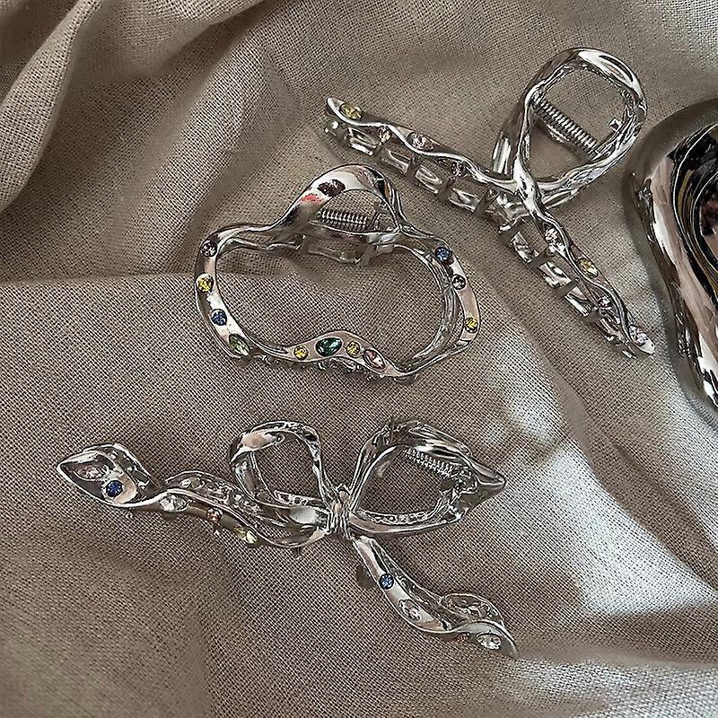 Girl Sweet Cool Color Diamond Element Hair Clip Silver Metal Shark Clip Back of Head High End Sensation Hair Clipper