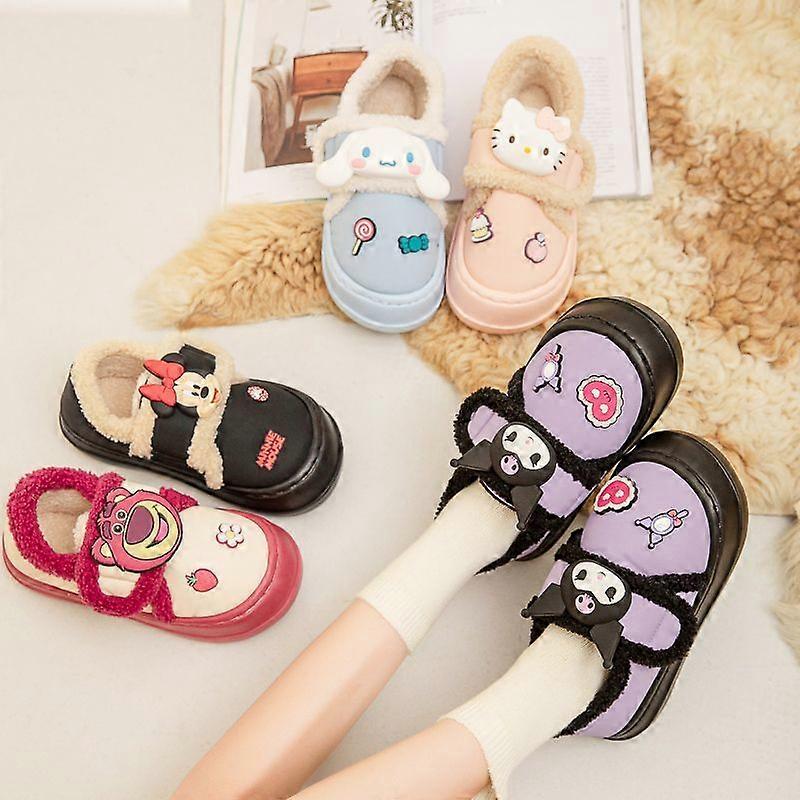 Kids' Slippers House Shoes Cartoon Lotso With Heel Cover Winter Shoes For Girls Warm Anti-slip Blue Pruple Shoes Size 36-41