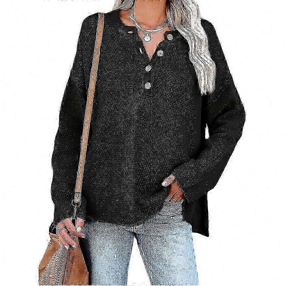 V-Neck Waffle Knit Pullover for Women Long Sleeve Button Sweater Autumn Winter Wear