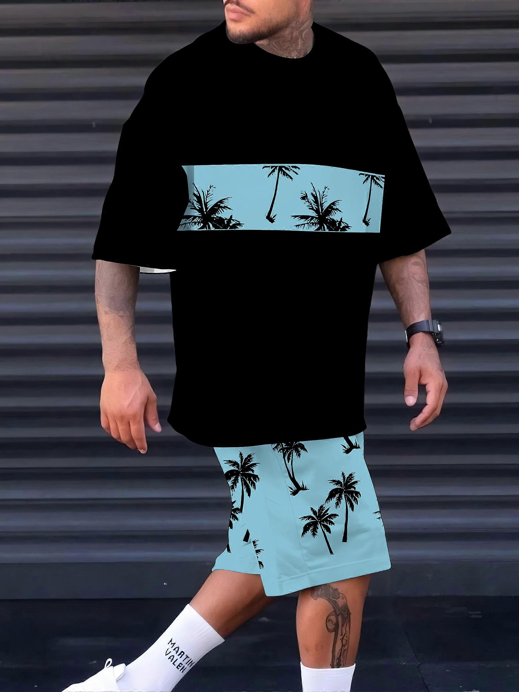 Summer 2025 new men's suit with Hawaiian beach print casual and fashionable outdoor men's wear