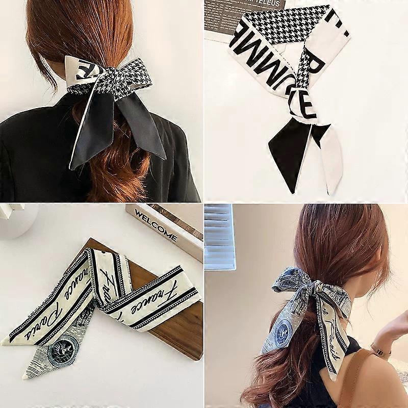 Small Long Silk Scarf Hot Girls Thin Tie Hair Accessories Imitation Silk Ink Painting Hair Band All Matching Headwear
