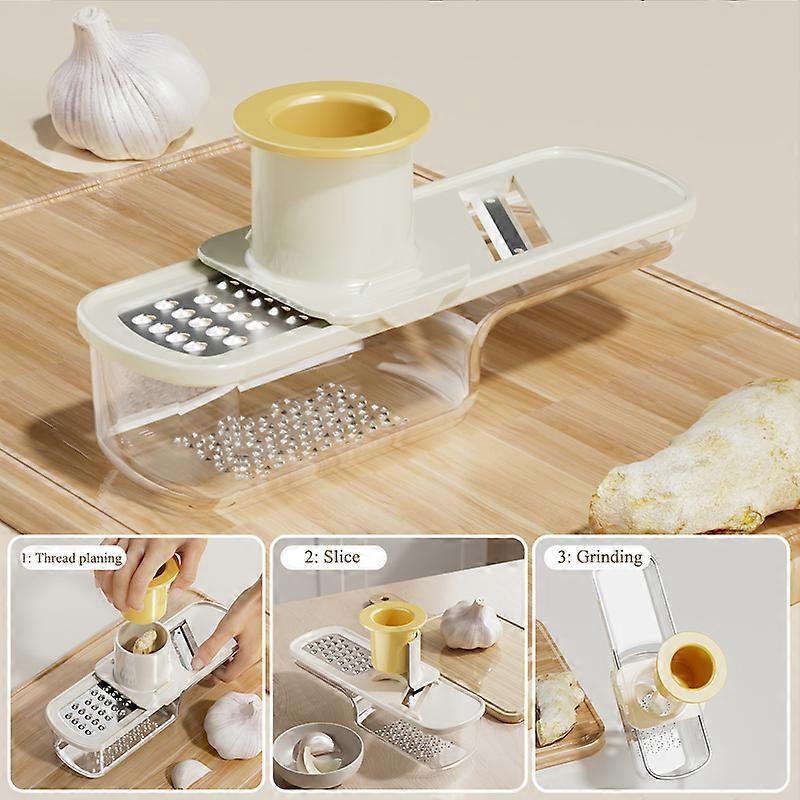 [DETAIL]<br>Mini 3in1 Garlic Ginger Grinder Kitchen Gadget Garlic Grinder Manual Garlic Press Kitchen Tools for Crushing Spices Herbs Garlic<br>Product description<br>Name: 3-in-1 Ginger Garlic Grinder<br>Material: ABS+PP+stainless steel<br>Style: Modern and minimalist<br>Function: Multi functional<br>Features: 3-in-1 function, environmentally friendly material, easy to carry, easy to clean, stainless steel disc, detachable structure<br>Round arch grinding: Round arch grinding, fast and fine grinding<br>Stainless steel blade: fast slicing, easier side dishes<br>Thoughtful hand guard: safe and worry free<br>Package include<br>1*3-in-1 Ginger Garlic Grinder<br>3-in-1 multifunctional grinder<br>Cut/slice/mash all done<br>Function 1: Thread planing<br>Function 2: Slice<br>Function 3: Grinding<br>Fully detachable body<br>Clean immediately with no residue left<br>0.3mm ultra-fine planing wire<br>Rough ginger and garlic can also be sliced into fine threads<br>Environmentally friendly stainless steel material<br>304 stainless steel disc, one push and one pull, not touching hands or splashing juice<br><br>[ATTRIBUTES]<br>- High-concerned chemical: None<br>- Feature: Stocked,Eco-Friendly<br>- Origin: Mainland China<br>- High-concerned chemical: None<br>- Feature: Stocked,Eco-Friendly<br>- Origin: Mainland China