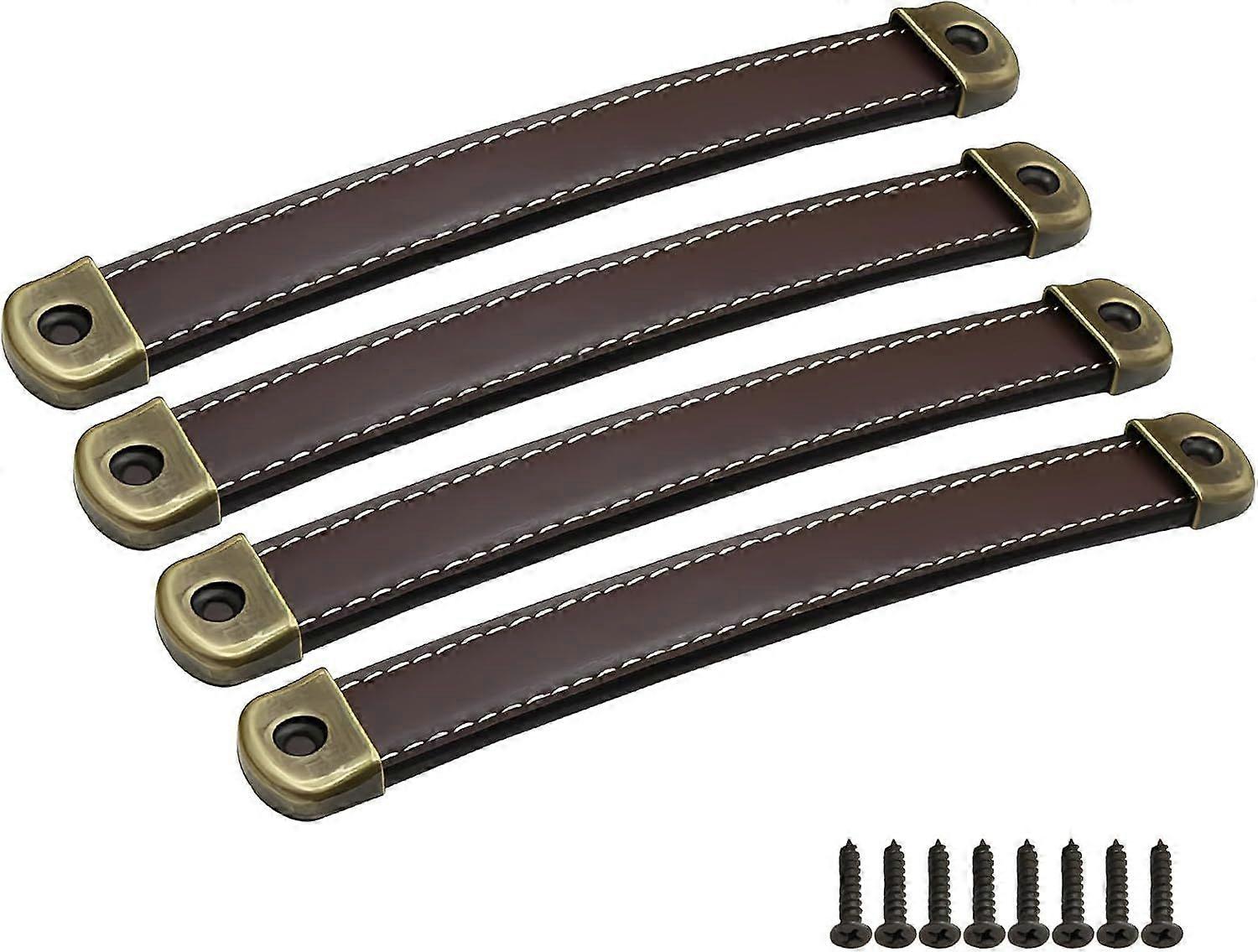 4 Pieces Leather Handle, Leather Door Pulls for Cabinets and Drawers, (Hole Spacing: 160 mm) (brown)