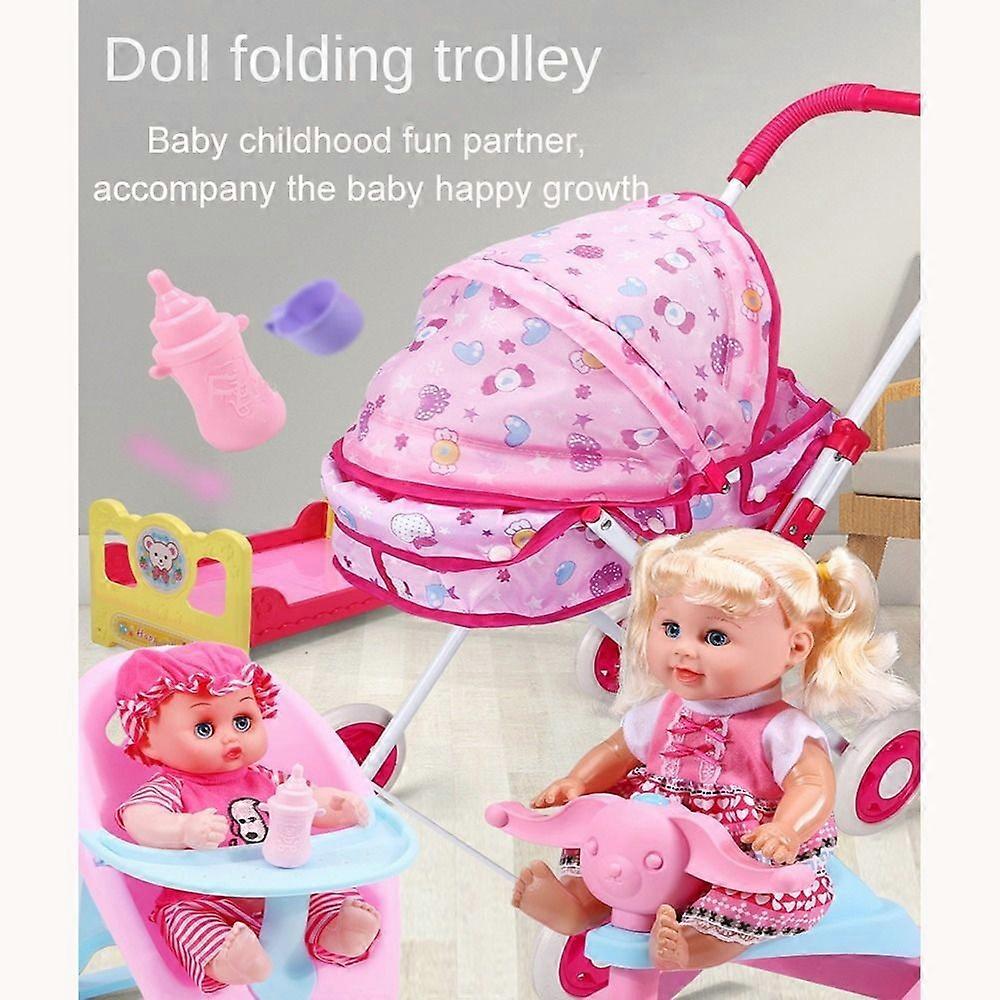 Trendy Plastic + Metal Dolls Pram Iron Support Frame Play Game Baby Stroller Role Play Kids House Accessories Kid Dolls Pram