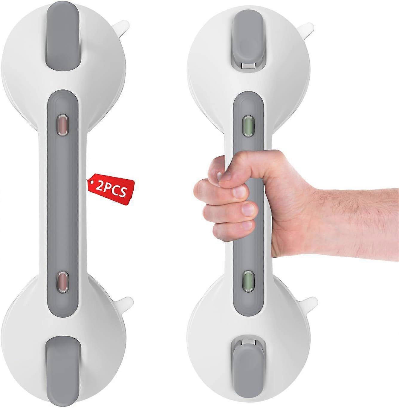 2PCS 12in Suction Cup Shower Handles, Bathroom Grab Bar, Safety Grab Bar, No Drilling Required, Shower Support Bar