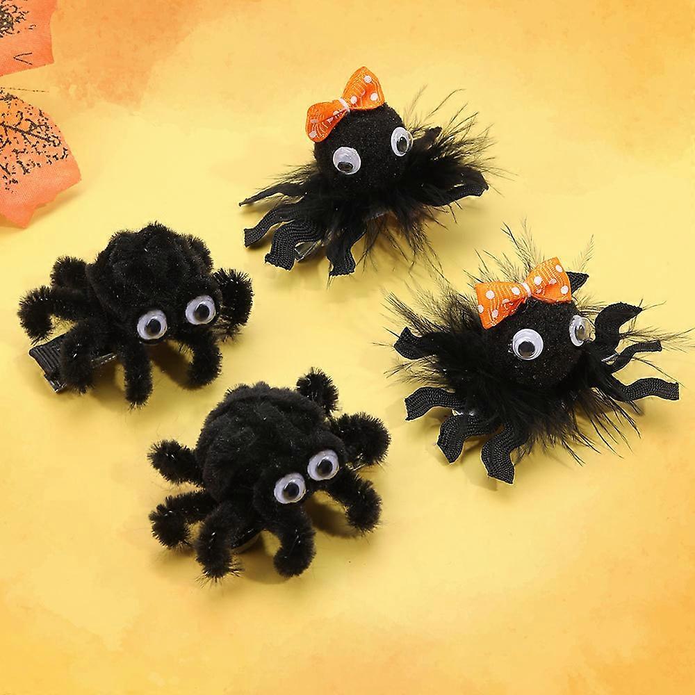 2pcs Spiders Hairpins Cartoon Plush Hair Clip Cute Decorations Headwear Black Spider Hair Halloween Accessories