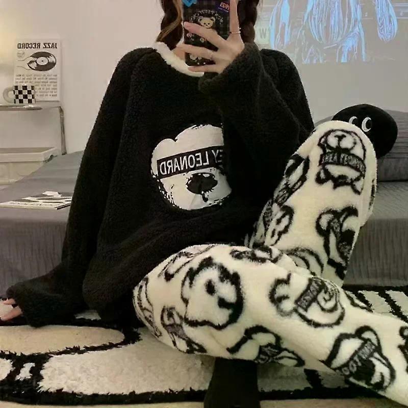 Thickened Warm Flannel Plus Size Women's Pajamas Tops and Trousers Sleepwear Homewear Fall and Winter Cartoon Bear Nightwear