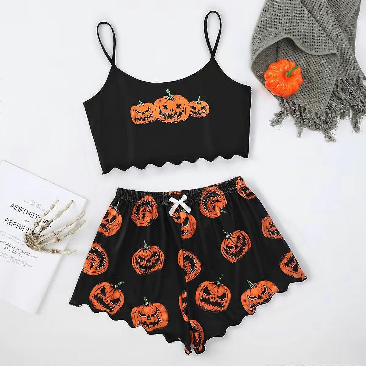 Two Piece Sets Womens Outifits Summer 2025 Printed Sleeveless Halloween Pumpkin Camisole Top and Shorts Home Wear Pajamas Suit