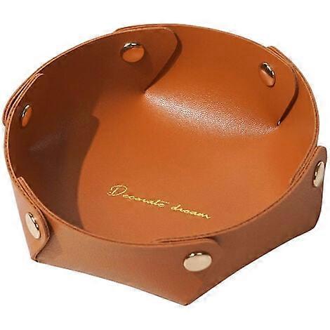 Round Leather Tray, Leather Storage Tray, Faux Leather Jewelry Tray, Coin Storage Tray for Keys, Watches, Office Supplies, Jewelry (Orange)