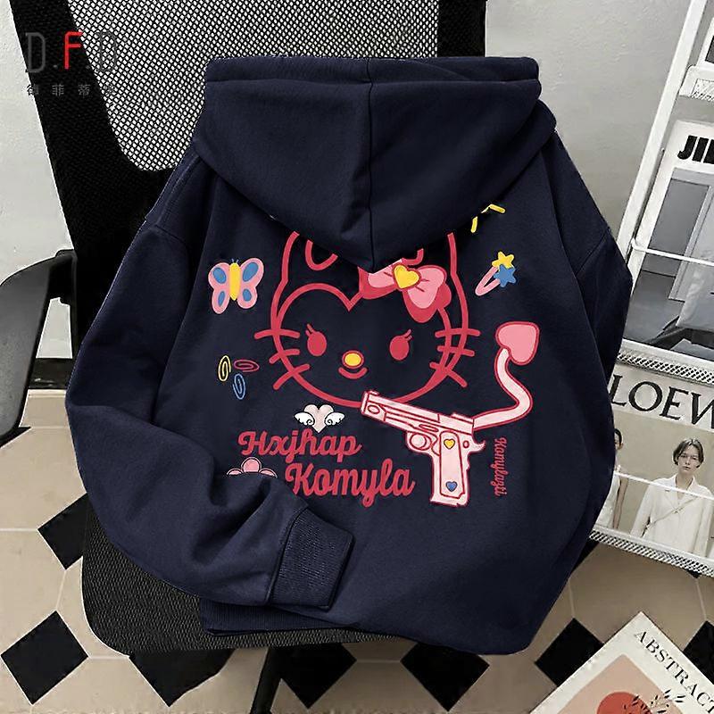 Hot Sanrio Hellokitty Hooded Sweatshirt for Girls Autumn Winter Winter Loose Plus Velvet and Thickened Couple Wear Casual Jacket