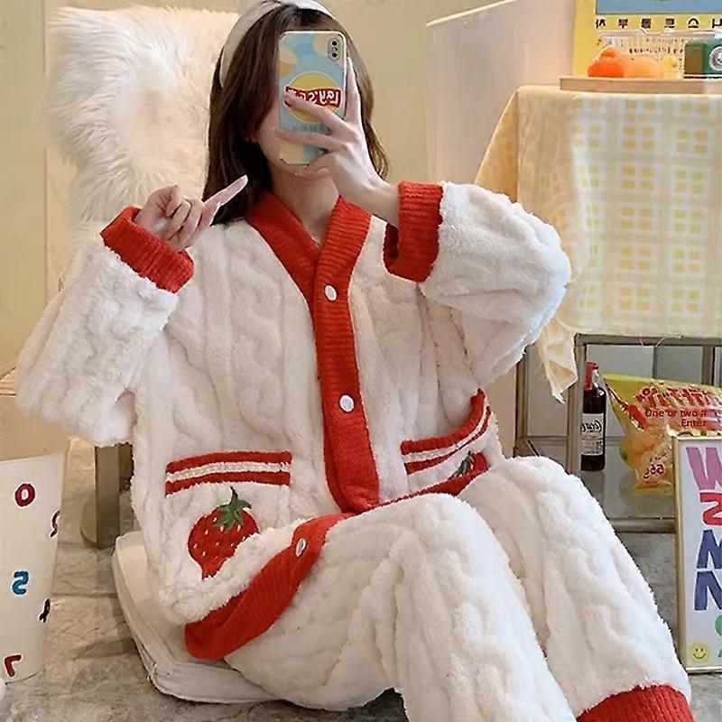 Thickened Warm Sleepwear Pink Peach Coral Velvet Women Homewear Suit Autumn and Winter Ladies Cardigan Two-Piece Set Nightwear