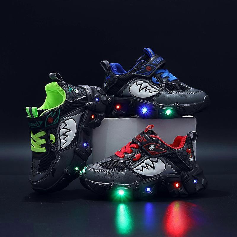 Kids'Casual Shoes Led Light Printing PU Leather Autumn Outdoor Sport Shoes For Boys Breathable Anti-slip Red Green Size 21-30