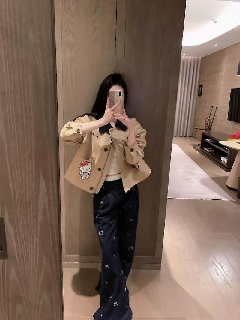 Hello Kitty Tops Coat Girls Handsome Long Sleeve Retro Jacket Y2K Sweatshirt Hot Cartoon Lapel Casual Versatile Street Workwear
