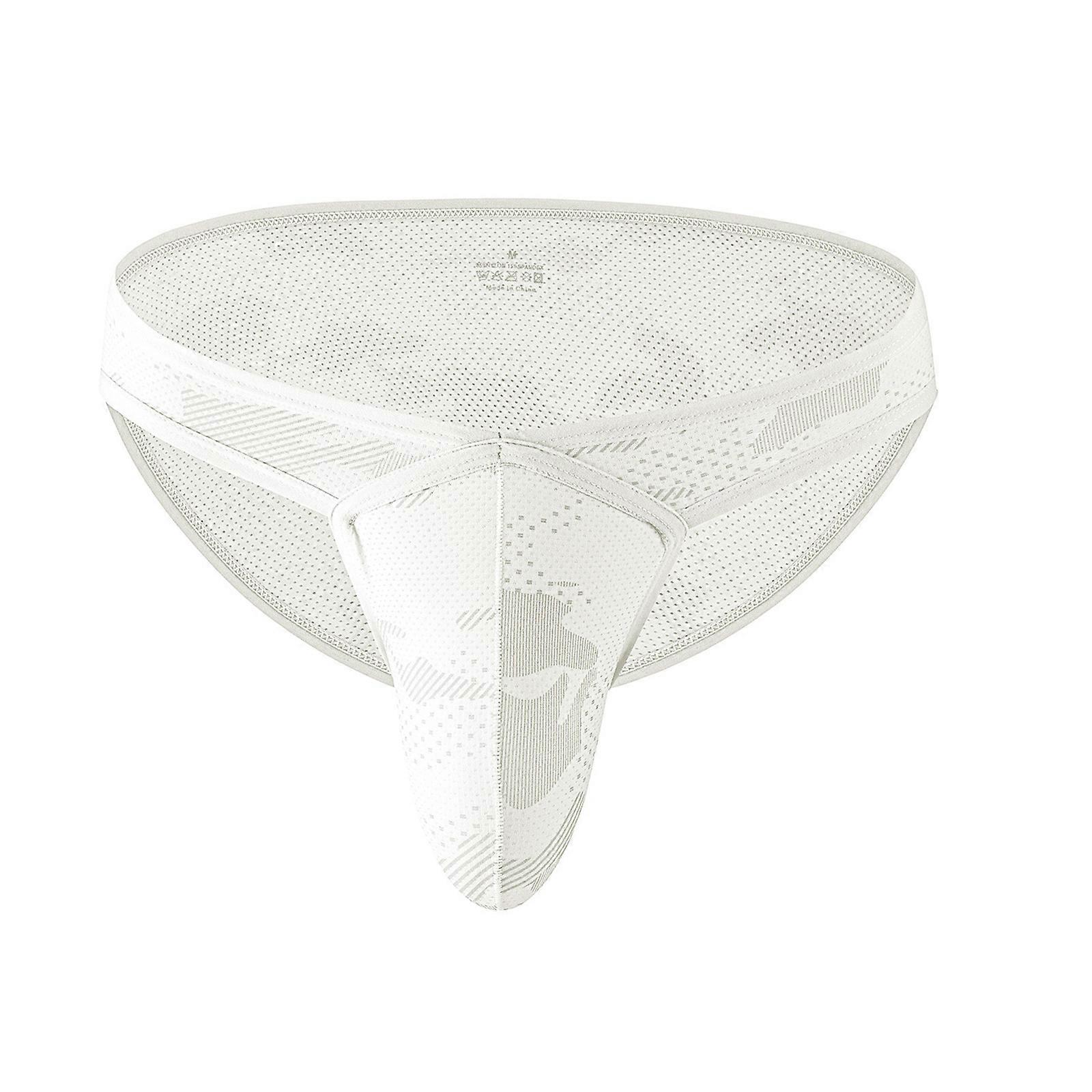 Seamless Men's Ice Silk Briefs Breathable Micros Mesh Underwear with Bulge Pouch Low Waist Bikini Underpants Thongs XL White