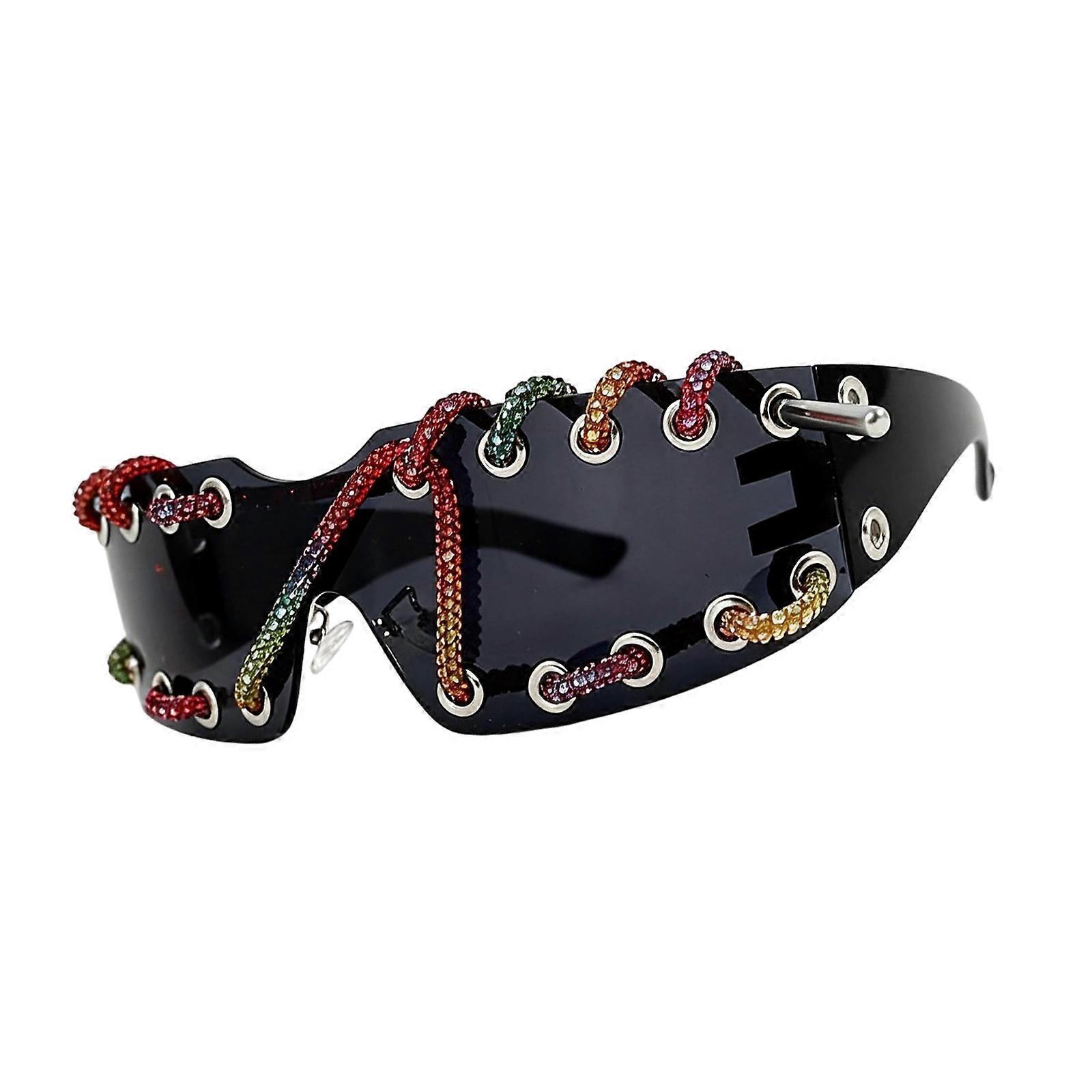 Rimless SunGlasses 2000s Styles UV400 Protections Cord Wraparound Eyeglasses for Women Teens Photography Party Eyewear SSA