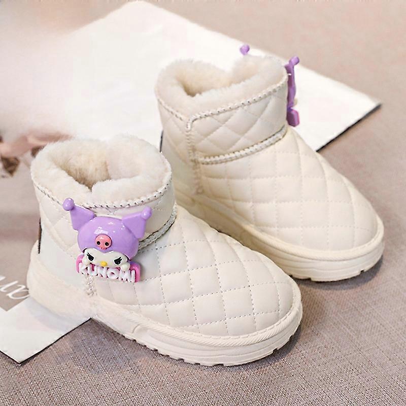 Kids'Casual Shoes Ankle Boots PU Leather Cartoon Kuromi Winter Shoes For Girls Anti-slip Warm Pink Beige Shoes Size 26-36