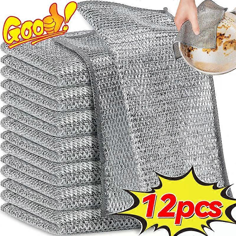 12/1pcs Magic Cleaning Cloth Thickened Double -sided Metal Steel Wire Rags Kitchen Dish Pot Washdishing Cloths Towel Clean Tools