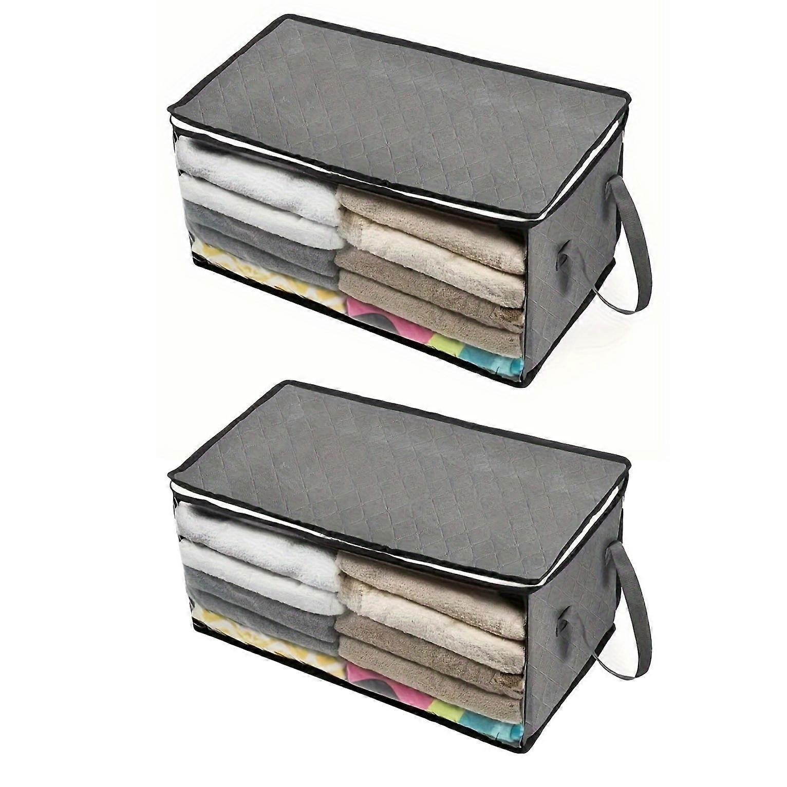 2PCS 54L Large Capacity Foldable Storage Box With Window And Lid Heavy Duty Organizer For Clothes Blanket Closet Under Bed Use