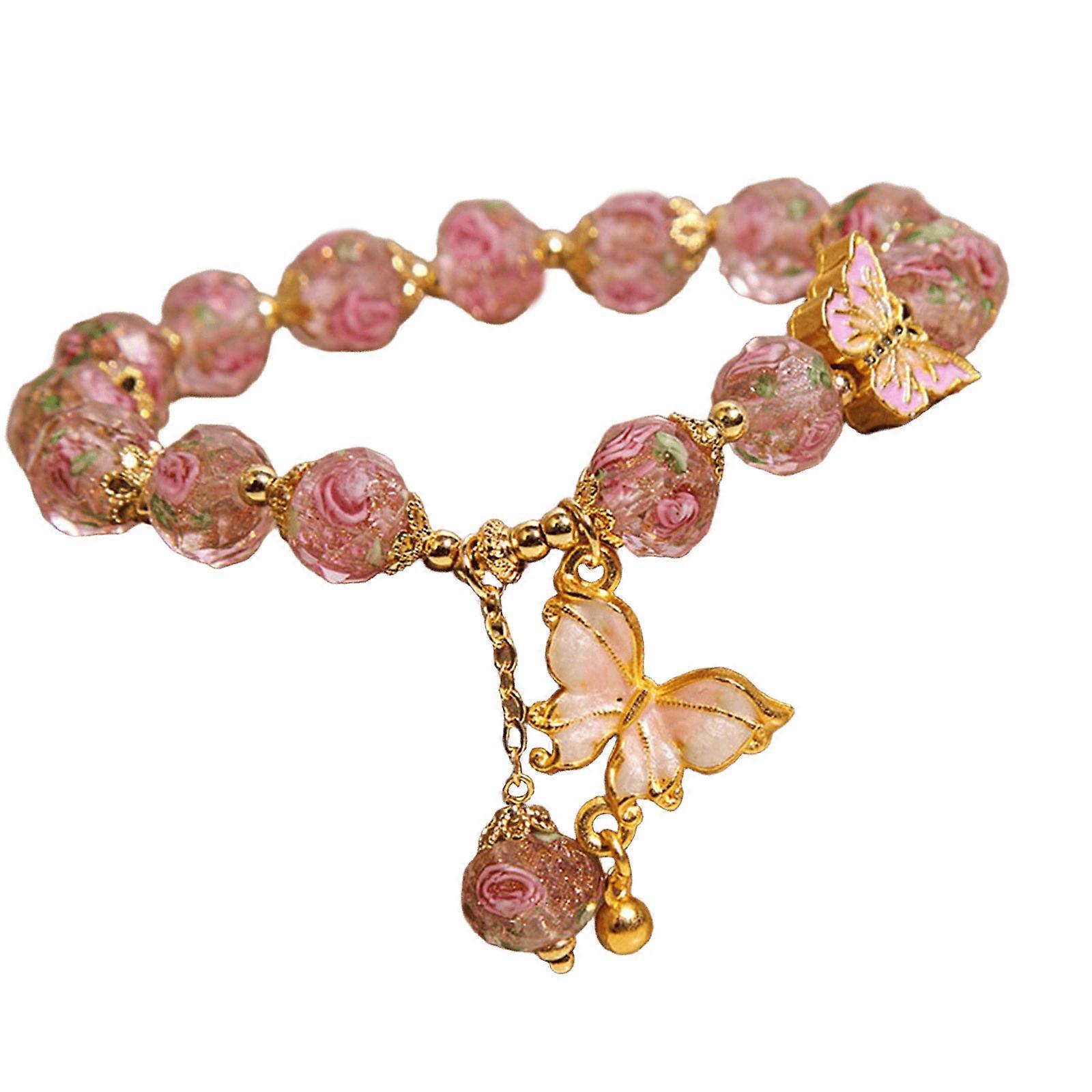 Practical Glass Bead Butterfly Pendant Bracelet Featuring Rose Charm Suitable for Fashion Statement and Comfortable Wear Pink