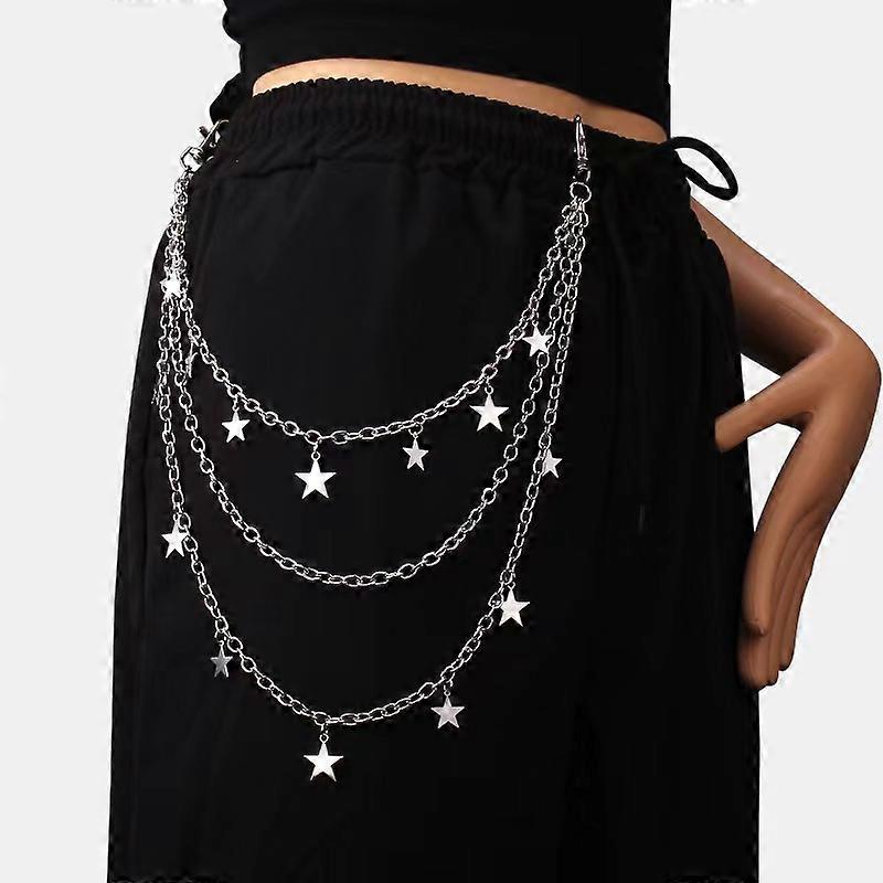 Men Y2k Star Charm Layered Street Style Pant Jeans Chain Belt