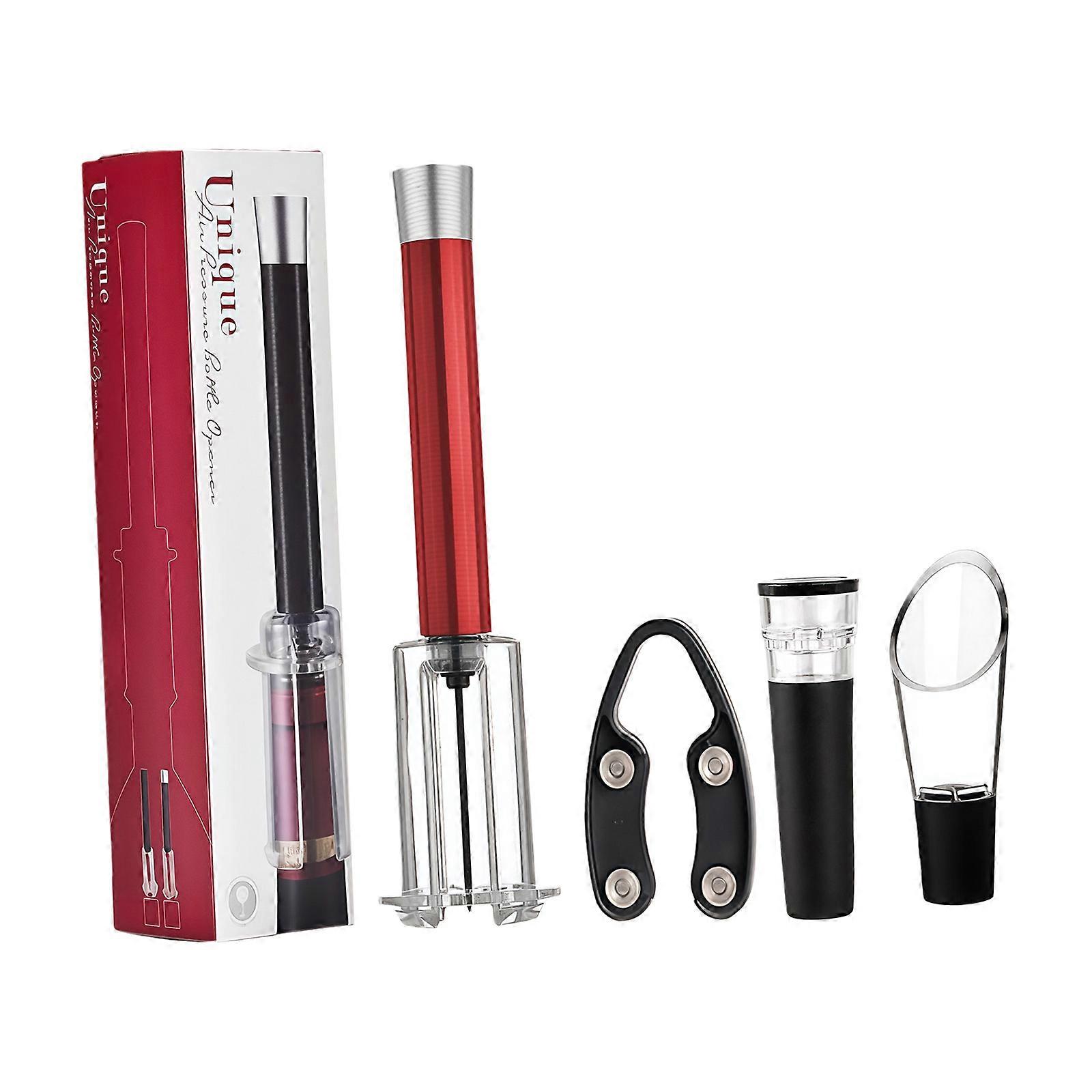 Compacts 4 in 1 Wine Accessory Set Air Pressure Pump Bottle Opener with Foil Cutter Aerator Pourer and Vacuum Stopper Red