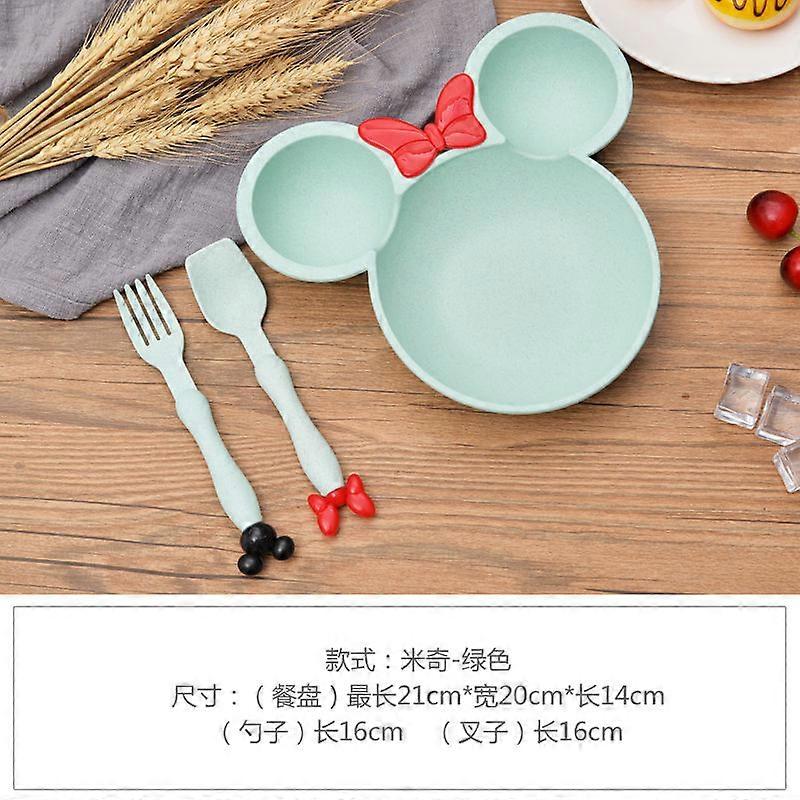 Disney Mickey Minnie Children Tableware Bowl Spoon Fork 3-piece Set Cute Cartoon Kindergarten Baby Dinner Plate Durable To Fall