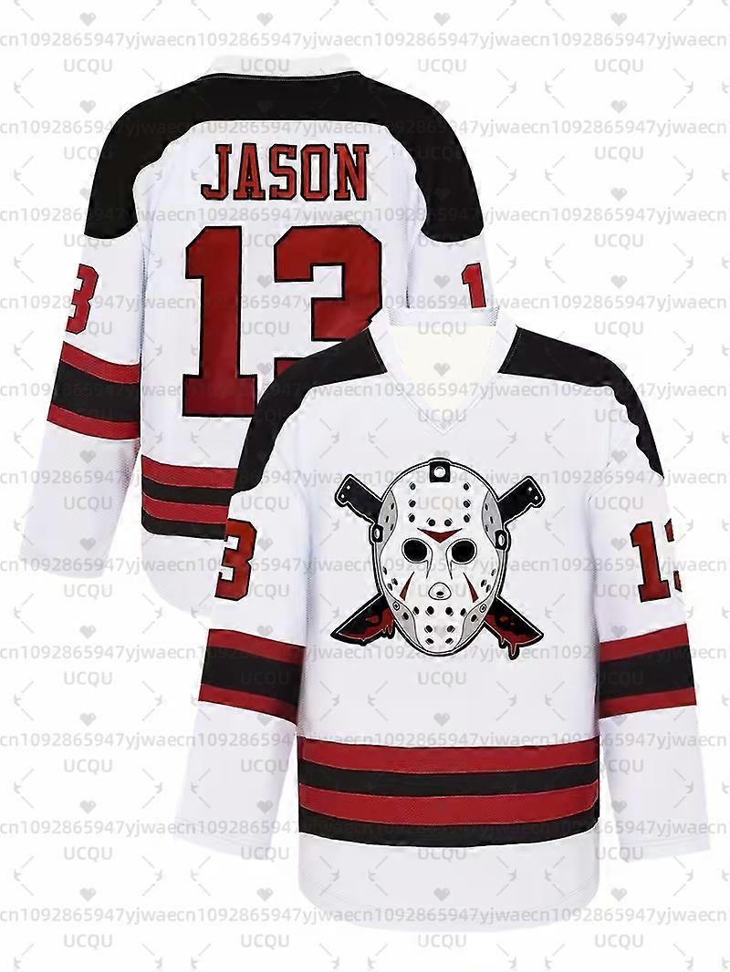 Men'S Women's American Movie VOORHEES Hockey Jersey #13 with Red Accents Breathable Training Games Christmas Long Sleeve T-shirt