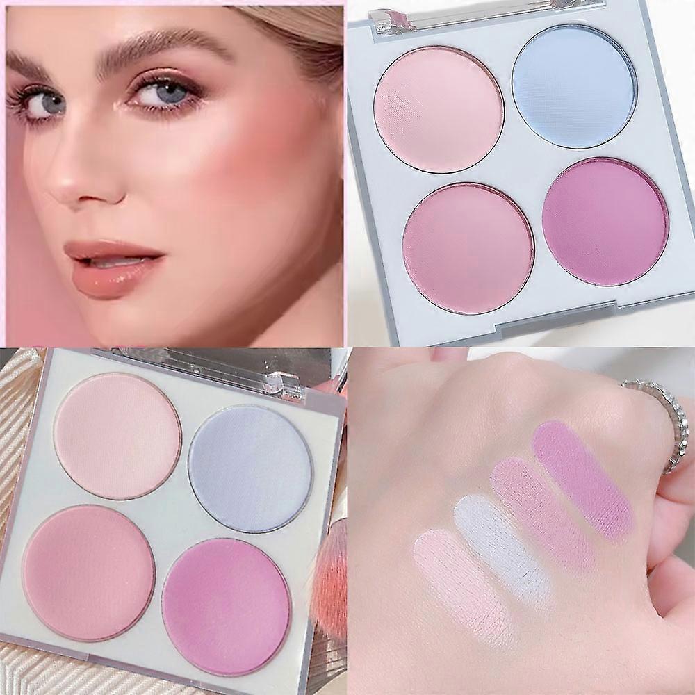 4-color blush palette -Ice cream powder formula and mixed sponge,convenient cosmetics daily makeup and styling minimalist makeup