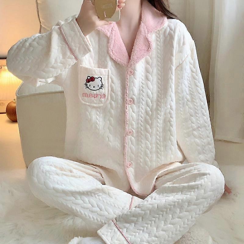 Hot Kawaii Sanrios Hellokitty Sweet Pajama Set for Girls In Autumn Winter Thickened Long-Sleeved Trousers Cute Casual Home Wear