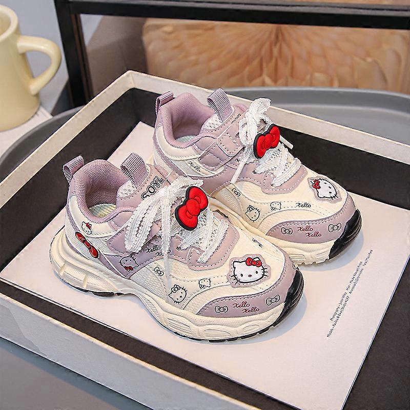 Kids'Casual Shoes Sneakers Cartoon Hello Kitty Bow PU Leather Spring Shoes For Girls Anti-slip Breathable Pink ​gray​ Sh