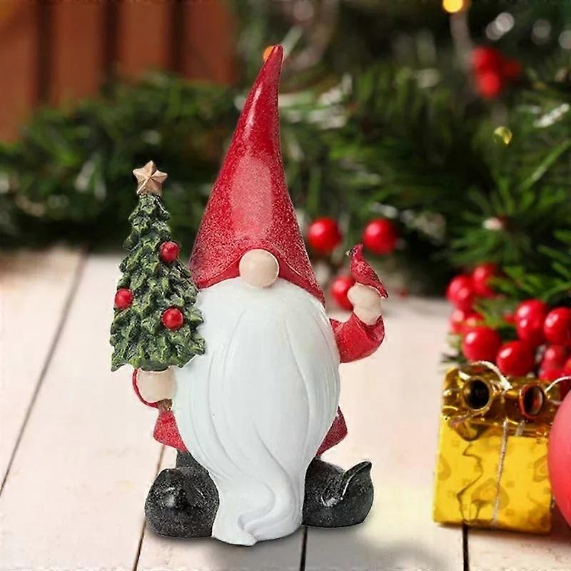 Santa Claus Statue Christmas Resin Craft Home Decoration Gnome Holding Christmas Tree Ornaments Garden Microlandscape Decor