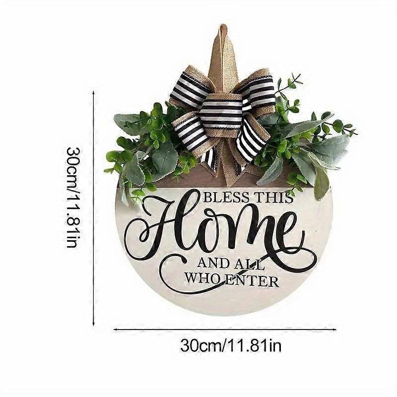 Round Flower Wreath Wooden Welcome Hanging Ornament For Front Door Outdoor Fall Decor Welcome Bow Knot Christmas Decoration