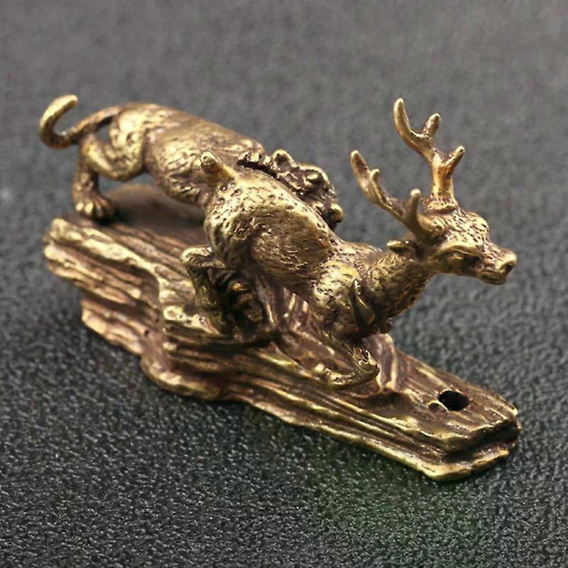 Tiger King Catching Deer Dragon and Dinosaur Statue Small Ornament Antique Bronze Animal Miniature Home Desk Decorations Craft