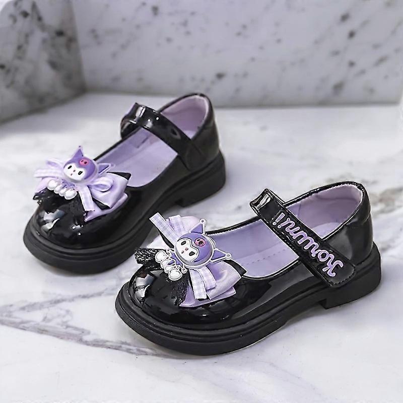 Kids'Sandals Kuromi PU Leather Bow Flat Spring Shoes For Girls Anti-slip Soft Thick Bottom White Black Shoes Size 26-36