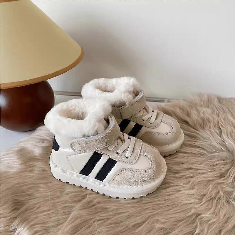 Kids'Casual Shoes Snow Boots PU Leather Winter Shoes For Girls Anti-slip Thickened Versi Velcro Black Beige Shoes Size 15-30