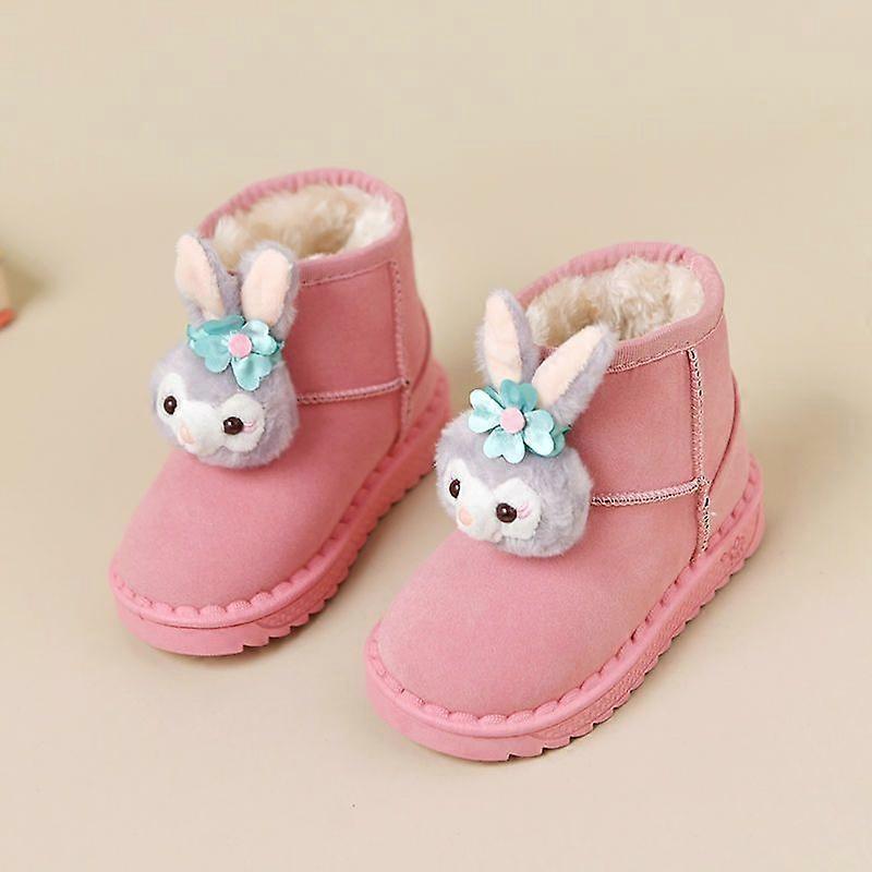 Children's boots Snow Boots Cartoon Winter Shoes PU Leather For Girls Warm Anti-slip Slip-on Pink Black Shoes Size 25-36