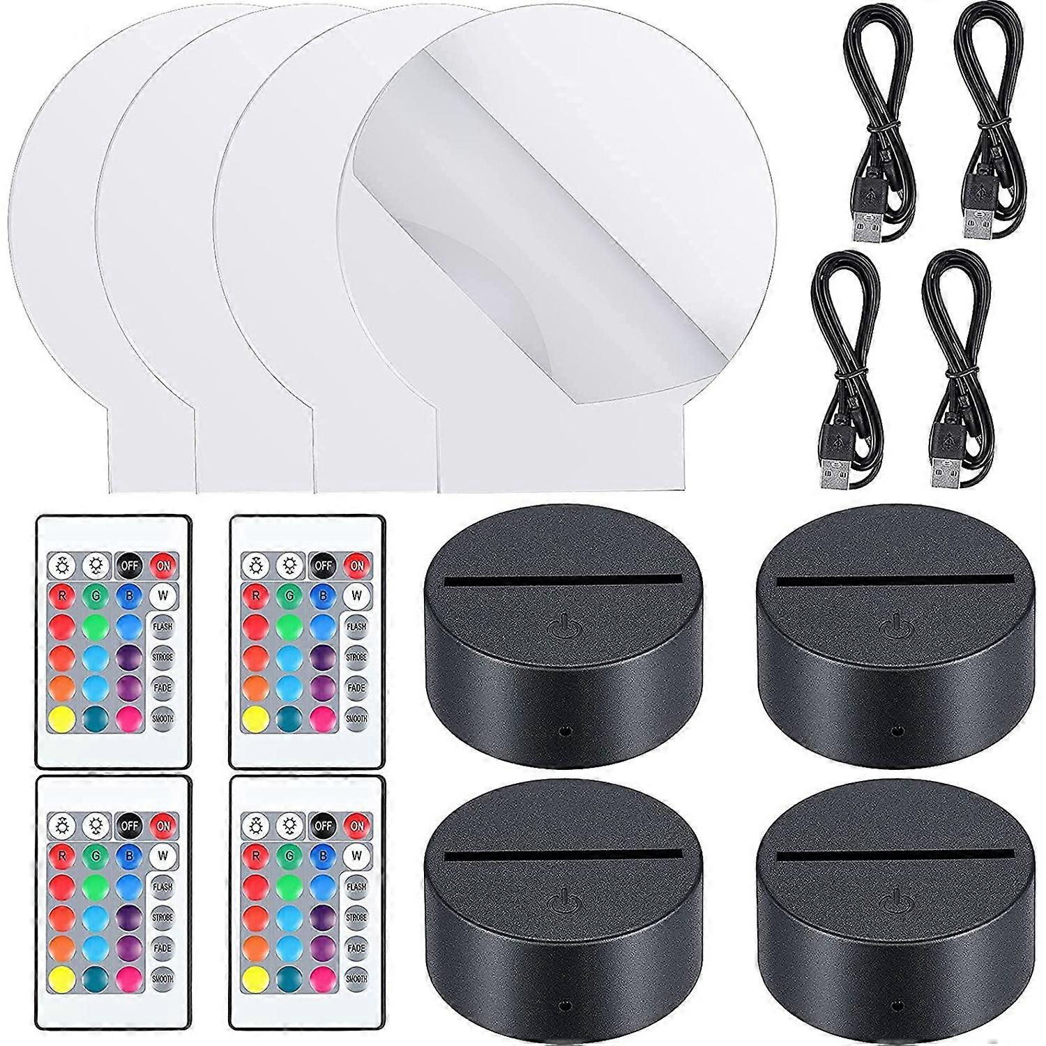 4 Pieces 3D Night Light LED Lamp Base with Clear Acrylic Sheets And Remote Controls USB Cables Adjustable 16 Colors 4 Mode