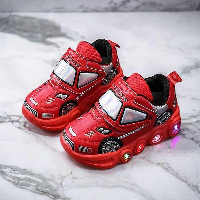 Diseny Kids'Casual Shoes Led Light Car Club Cartoon PU Leather Spring Shoes For Children Anti-slip Red Blue Shoes Size 21-30