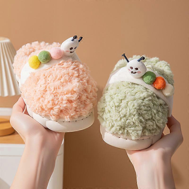 Kids' Slippers House Shoes Cartoon Solid Color​ Cotton Winter Shoes For Children Warm Anti-slip Pink Green Shoes Size 24-35