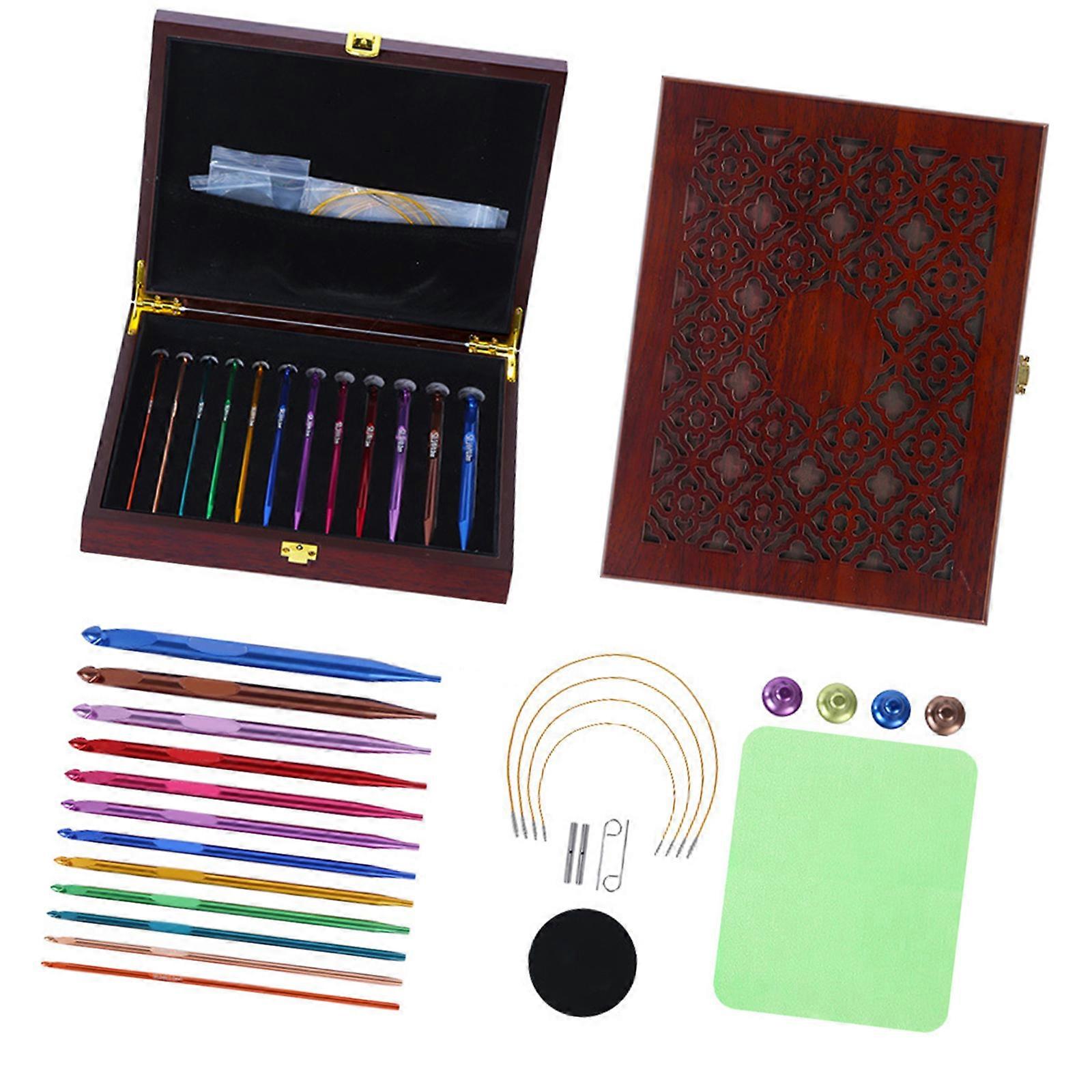 12Pcs Detachable Aluminum Alloy Tunisian Crochet Hook Interchangeable Circular Knitting Needle with Bag for Weaving Multicolor
