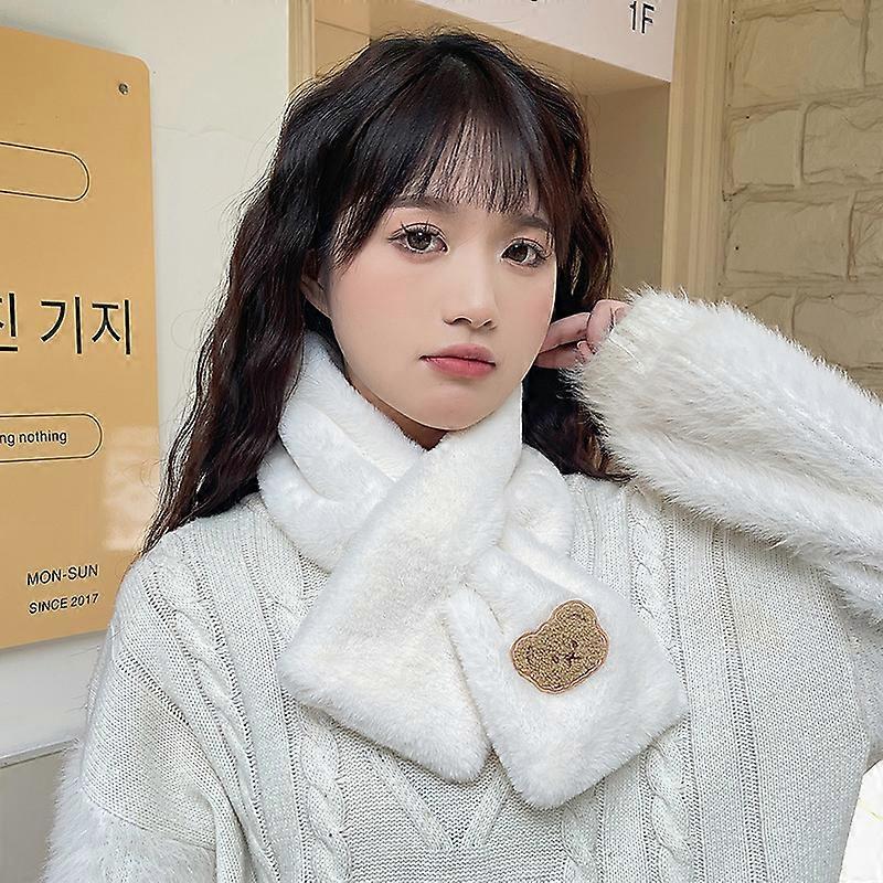 Plush Scarf Women's Autumn and Winter Korean Version of The Cute Bear Scarf Students All-match Warm Cross Collar