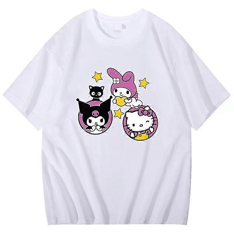 Kawaii Hello Kitty Spring Summer T-Shirt Girls Short-Sleeved Y2K Sanrio Cartoon Casual Couple Short-Sleeved Tops Sportswear Hot