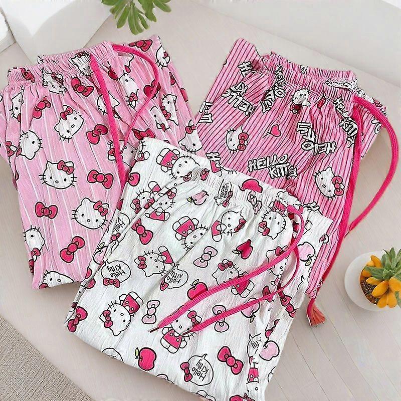 Hello Kitty Pink Pants Girls Spring Summer Drawstring Pajama Pants Y2Ksanrio Cute Casual Loose Sports Pants Walk Versatile Pants