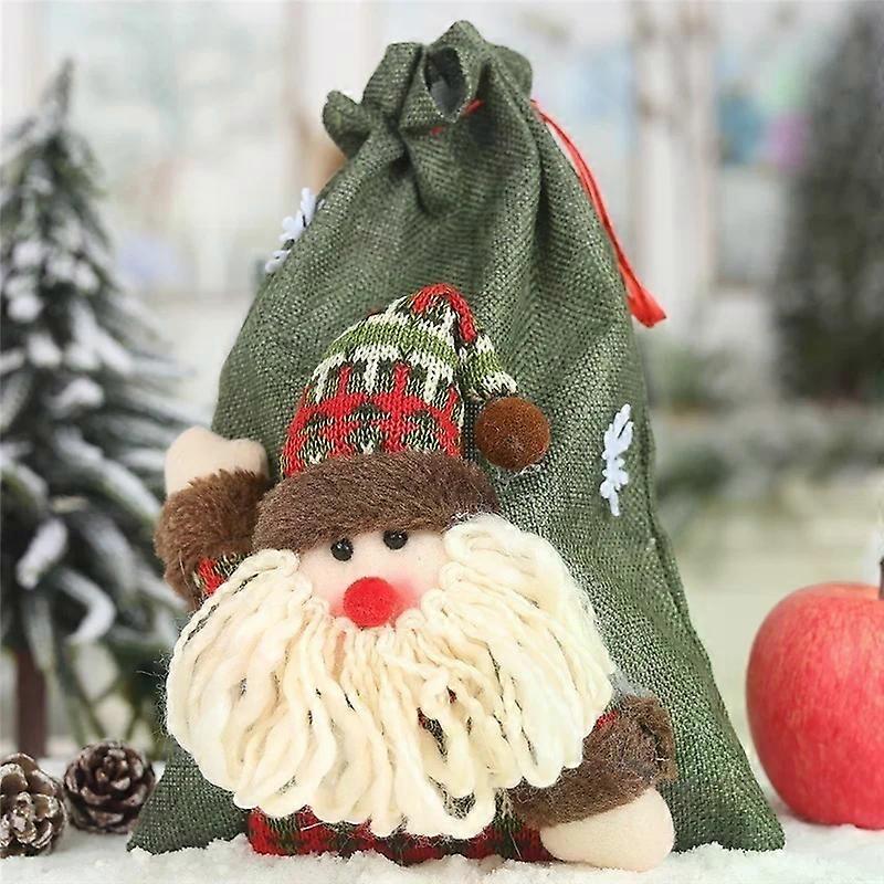New Year Christmas Decorations for Home Linen Drawstring Gift Bag Large Candy Christmas Bags Holiday Cartoon Apple Bag