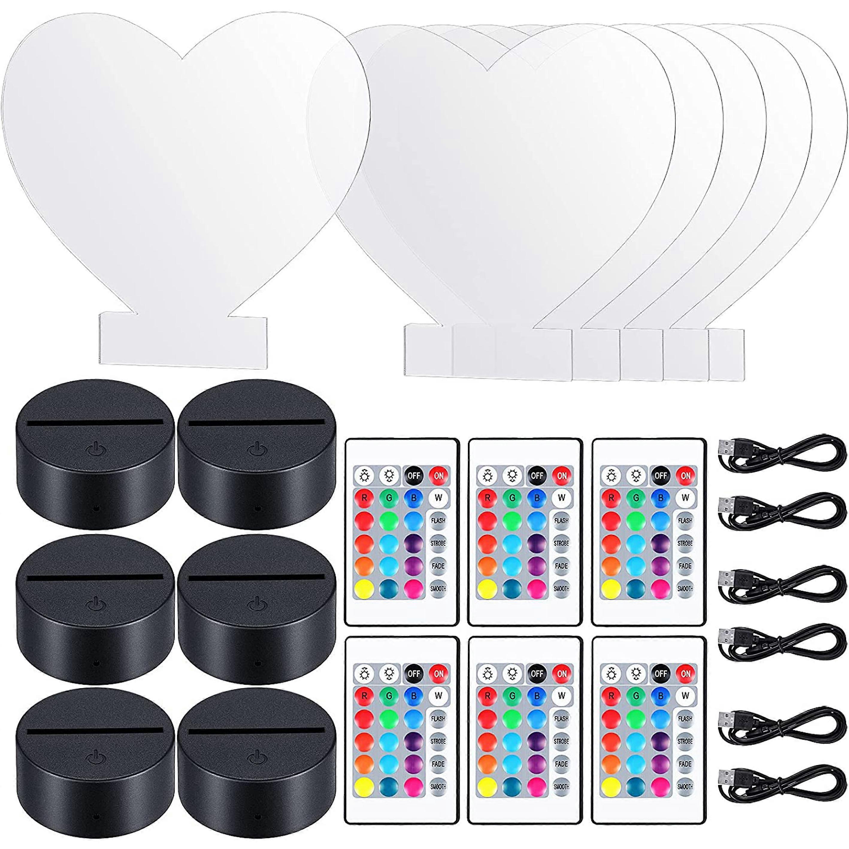 6 Sets DIY 3D Night LED Light Lamp Including 6 Light Display Stands And Clear Acrylic Sheets With Remote And USB Cables For Room