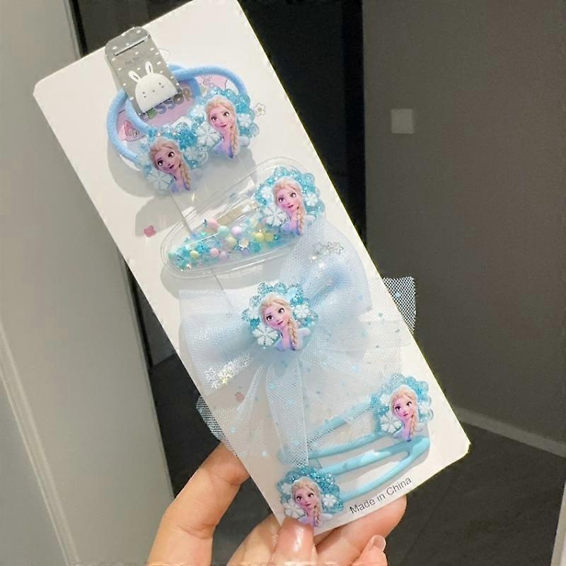 Disney Frozen Hair Clip Hair Rope Elsa Cartoon Barrettes Hairpin Rubber Band Fashion Sequin Blue Pink Girls Headwear Accessories