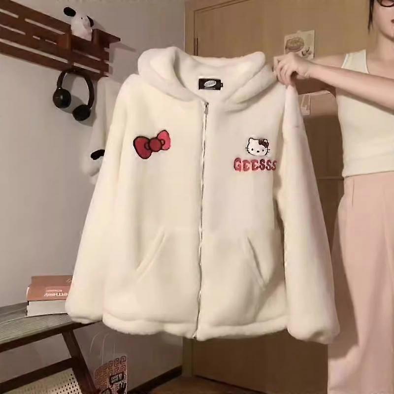 Hot Kawaii Sanrios Hellokitty Hooded Sweatshirt Girls Autumn Winter Cute Loose Cardigan Thickened Couple Casual Versatile Jacket