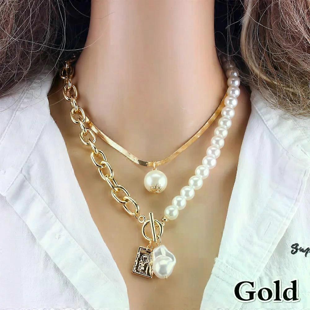 New Multi-Layers Fashion Women Pearl Geometric Pendants Necklaces Metal Snake Chain Necklace Choker Jewelry Gifts