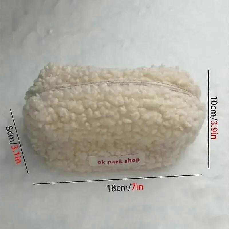 Large Capacity Travel Makeup and Wash Bag Coin Purse Stationery Storage Bag Cute Plush Makeup Bag Stylish and Simple Lamb Wool