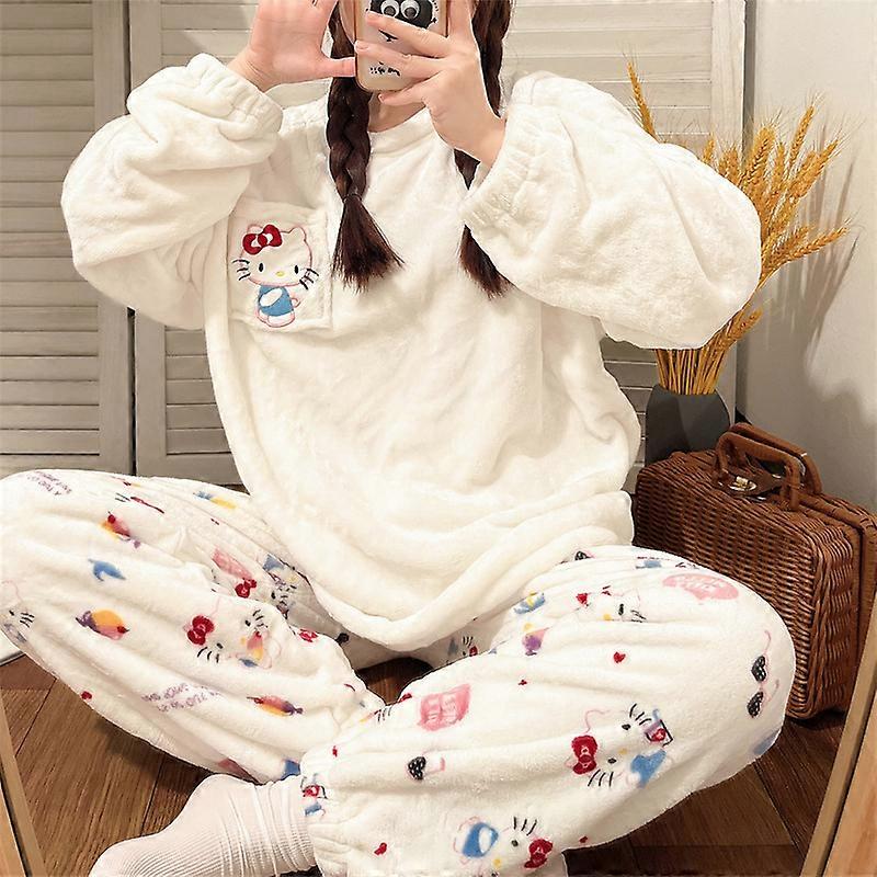 Hot Kawaii Hellokitty Autumn Winter Pajamas Girl My Melody Long-Sleeved Trousers Sweatshirt Sweet Couple Warm Home Clothes Set